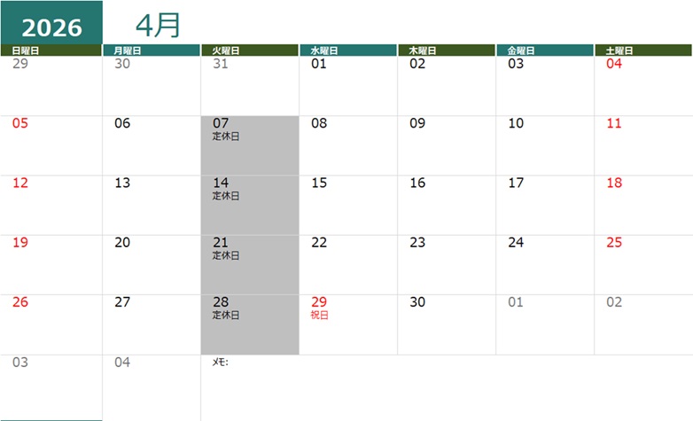 2026年4月の営業時間は以下の通りになりますので、宜しくお願いいたします。 定休日: 7日、14日、21日、28日(毎週火曜日)平日 : 11:00~21:00(最終受付20:30)土日祝: 10: …